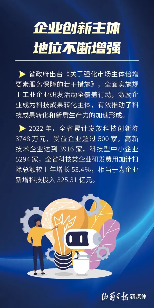 制定出臺(tái)激勵(lì)科技成果轉(zhuǎn)化法規(guī)政策24個(gè)、技術(shù)合同交易總額實(shí)現(xiàn)五年翻番、科技成果轉(zhuǎn)化引導(dǎo)專項(xiàng)五年累計(jì)投入2.21億元……近年來,我省科技成果轉(zhuǎn)化堅(jiān)持新發(fā)展理念,加速科技成果在晉落地轉(zhuǎn)化和產(chǎn)業(yè)化,取得顯著成效。