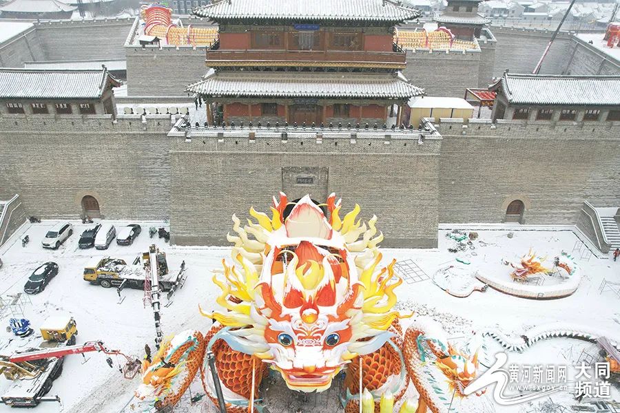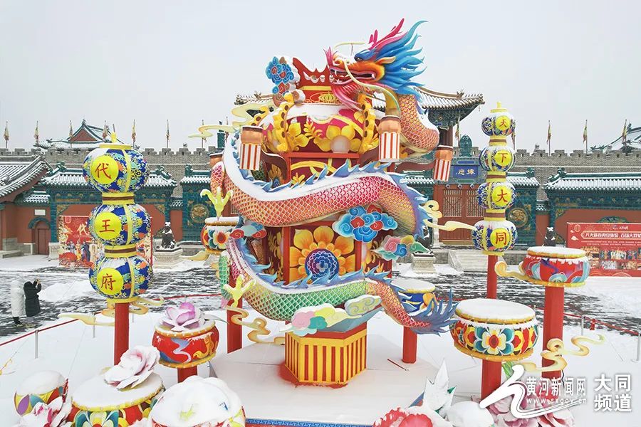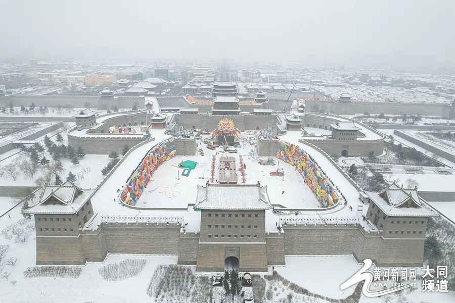 在古城大同,更有一番“雪打燈”的美景。雪打燈,燈更明。巍巍古城墻,白雪鑲壁瓦,碎碎墜瓊芳,雪后的大同,別有趣味。
