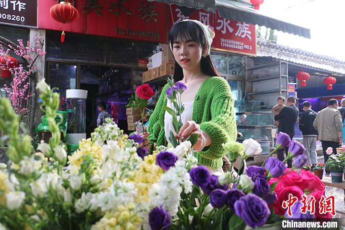 3月23日,安徽省合肥市裕豐花鳥魚蟲市場,“Z世代”女孩詹銀銀正在挑選鮮花,準(zhǔn)備擺攤銷售。隨著氣溫回升,鮮花市場迎來一波熱度。記者近日在采訪中了解到,中國年輕人正在通過各種鮮花消費場景把春天“帶回家”,鮮花消費已突破固有的節(jié)日專屬儀式感,成為年輕人日?!皭偧骸钡闹匾绞?。中新社記者 張強(qiáng) 攝