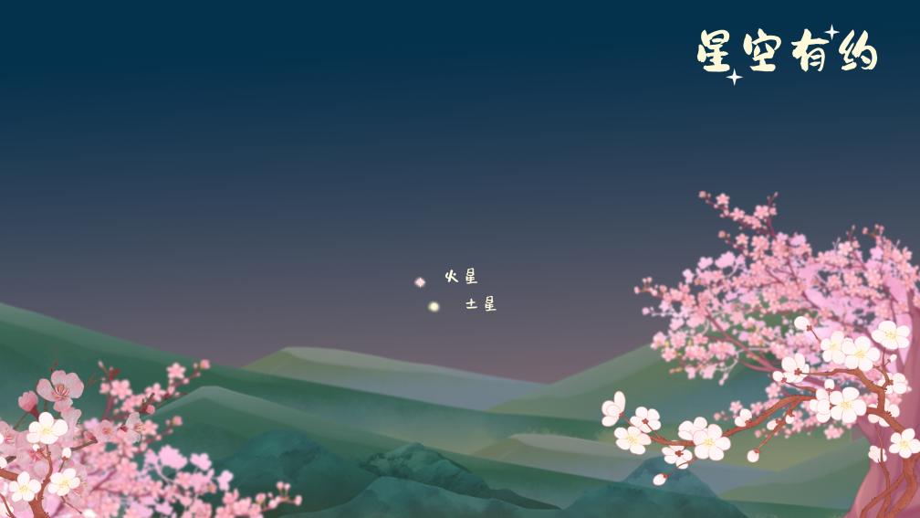 進(jìn)入4月,火星與土星在黎明前的低空越靠越近,11日最近,二者之間的角距離近乎1個(gè)滿月視直徑大小。日出前,火星與土星攜手出現(xiàn)在東南方,但地平高度有些低,可觀測(cè)時(shí)間不足1小時(shí)。