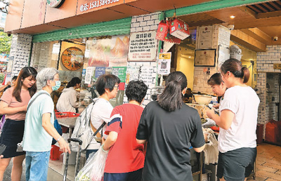 粽子熱氣騰騰地出鍋,門外擠滿了排隊(duì)的本地市民、外地游客……位于深圳蛇口市場(chǎng)門口的嘉華小吃店,店面不大,但人氣很旺?!八恤兆拥陜?nèi)現(xiàn)包,高峰期4個(gè)‘粽子工’從早到晚忙不停,一天賣出好幾千個(gè)?!钡曛魅~向家說。憑借父輩傳授的裹粽手藝,葉老板從推車擺攤開始,將嘉華小吃店做成一家20年老店,如今又登上了“必吃榜”。