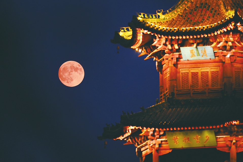 9月17日傍晚,太原迎澤公園,一輪巨大的圓月映襯著仿古建筑,詩意滿滿。當日是中秋佳節(jié),恰好邂逅本年度最大的“超級月亮”。所謂“超級月亮”,其實是指月球在近地點附近時,恰好是滿月的時候,這樣一來,視覺上就會顯得格外巨大和明亮。據(jù)悉,今年的“超級月亮”平均每60年才會出現(xiàn)一次。