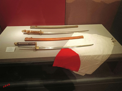6.刻有“太原入城凱旋紀(jì)念復(fù)興皇國(guó)恢弘天業(yè)”字跡的日軍九八式軍刀。