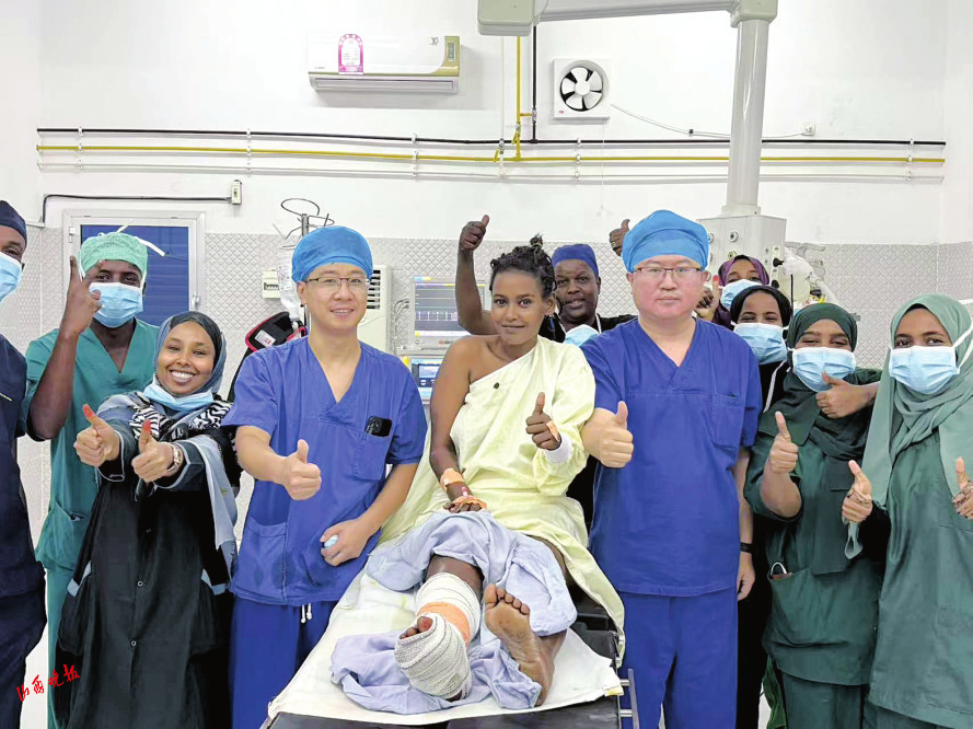 在麻醉的作用下,患者全程清醒、無(wú)痛。骨科醫(yī)生楊青則憑借熟練的手術(shù)操作,成功為她實(shí)施了創(chuàng)面皮膚軟組織清創(chuàng)術(shù)?;颊咝g(shù)后恢復(fù)良好,對(duì)醫(yī)療隊(duì)的精湛醫(yī)術(shù)和無(wú)私奉獻(xiàn)表示由衷的感謝。她表示,從未想過(guò)在吉布提能夠接受到如此卓越非凡的醫(yī)療服務(wù),感謝中國(guó)醫(yī)療隊(duì)的到來(lái),為自己帶來(lái)了希望。