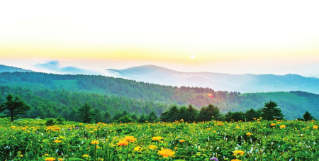 五臺山的生態(tài)魅力,始于其獨特的“垂直生命帶”。從山腳的農(nóng)墾帶向上,山地落葉闊葉灌叢、針葉闊葉混交林、寒溫性針葉林、亞高山灌叢依次鋪展,最終在山頂形成亞高山草甸,構成“一山存四季,十里不同天”的生態(tài)奇觀。作為華北地區(qū)典型的山地草甸,盛夏時節(jié)金蓮花、苔草等幾十種植物肆意綻放,宛如金色星河落滿翠綠地毯。