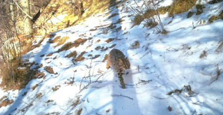 貓科豹屬動物,“山西四大旗艦物種”之一。2022年首次在五臺山被紅外相機記錄,如今已連續(xù)三年在門限石林場、南梁溝等區(qū)域活動,其存在標志著當?shù)厣鷳B(tài)系統(tǒng)結構完整、功能健康。