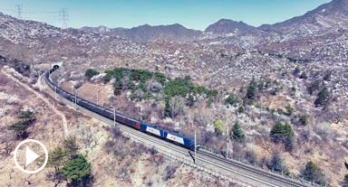 大秦線上滿載“烏金”的萬噸重載電煤列車在花海中穿山越嶺,高效運(yùn)輸能源物資,全力保障民生用電需求,繪就春日里的能源保供最美畫卷。