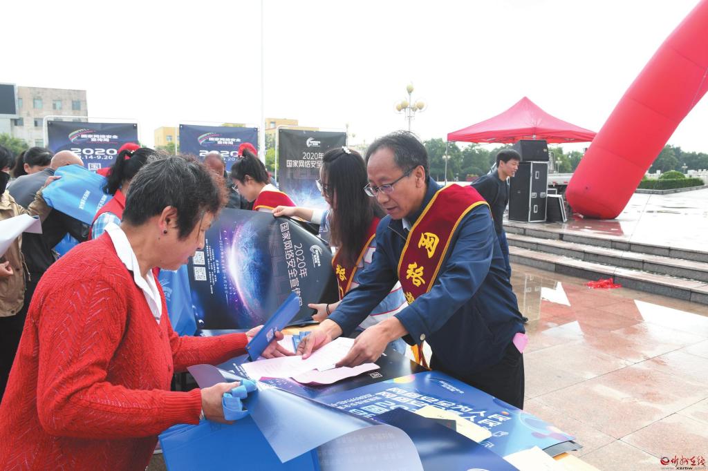 在2020年國家網(wǎng)絡(luò)安全宣傳周活動(dòng)中,定襄縣采取多部門聯(lián)合的方式,通過懸掛宣傳橫幅、擺放宣傳展板、發(fā)放網(wǎng)絡(luò)安全知識(shí)手冊(cè)等形式,深入宣傳數(shù)據(jù)安全管理、個(gè)人信息保護(hù)等方面的法規(guī)、標(biāo)準(zhǔn),并重點(diǎn)圍繞個(gè)人信息保護(hù)、網(wǎng)上交易辦理、惡意軟件清理、金融詐騙防范等市民關(guān)心關(guān)注的內(nèi)容開展宣講、提供咨詢服務(wù),切實(shí)提高廣大人民群眾網(wǎng)絡(luò)安全意識(shí)和防護(hù)技能,引導(dǎo)廣大群眾依法用網(wǎng)、文明用網(wǎng),營造健康文明的網(wǎng)絡(luò)環(huán)境。圖為9月15日縣城宣傳現(xiàn)場。 張玉虎 攝