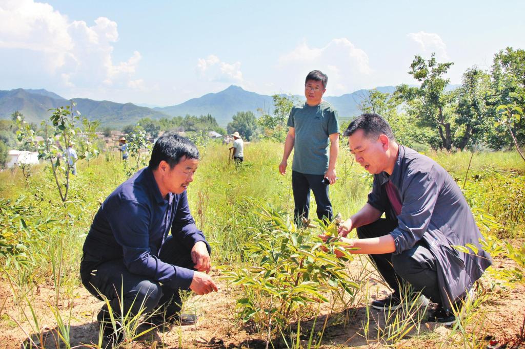 深秋季節(jié),由山西交控集團(tuán)駐五臺縣東雷鄉(xiāng)孟家坪村扶貧工作隊幫扶種植的480畝油用牡丹還在茁壯生長。41戶入社脫貧戶依靠五臺農(nóng)商銀行金融扶貧的優(yōu)惠政策投資種植。到5年收獲期,年可創(chuàng)產(chǎn)值96萬元,戶均收入2.3萬元。圖為工作隊員在察看油用牡丹長勢。 俊賢 先良 攝