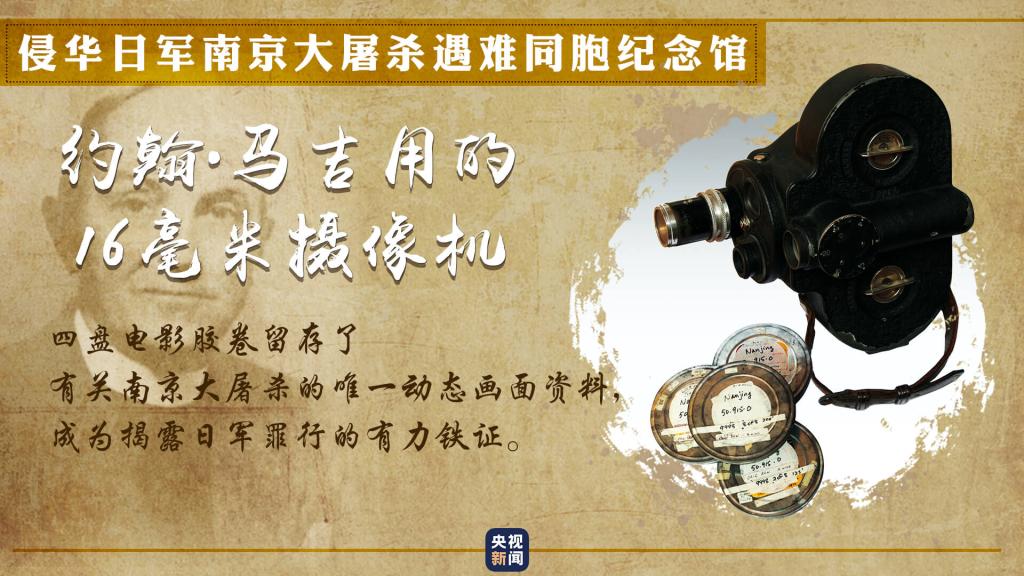 約翰·馬吉用他的16毫米家用攝像機,借職務(wù)之便偷偷拍攝,記錄下日寇的暴行。整整4盤膠卷,每一幀都是揭露日寇罪行的有力鐵證,也是留存至今的有關(guān)南京大屠殺的唯一動態(tài)畫面。