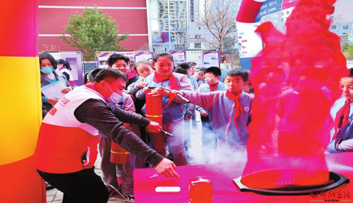 “家校平安”志愿者指導(dǎo)學生使用滅火器