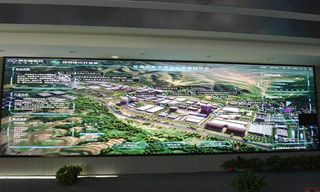 在位于岢嵐縣融媒體中心的項(xiàng)目臨時(shí)辦公地,對(duì)著占滿一堵墻的大屏幕,記者聽取了京東(岢嵐)有關(guān)業(yè)務(wù)工作人員的情況介紹。