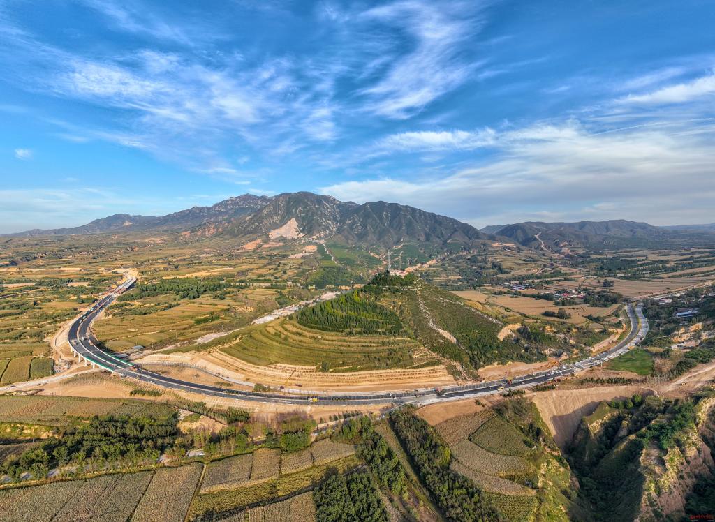 無人機(jī)升空,視野逐漸開闊,太忻大道如同巨龍穿行在大地之上,雄赳赳奔向遠(yuǎn)方。