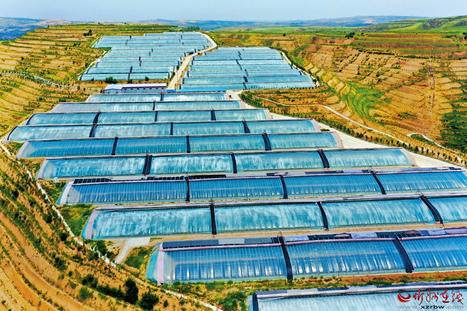峁梁之間,溝壑縱橫。下了高速,路隨峁轉(zhuǎn),快到榆嶺窊,車窗外的風(fēng)景也變了,密集閃過一排排人造林。上峁放眼,溝梁之間,成片的日光溫室大棚宛如湖泊,在冬日暖陽下反射出粼粼波光。大棚之上,這邊一排排白墻灰瓦是別墅群,那邊人才公寓緊挨著老年公寓,飄揚(yáng)著鮮艷國旗的地方是榆嶺窊村黨群服務(wù)中心。