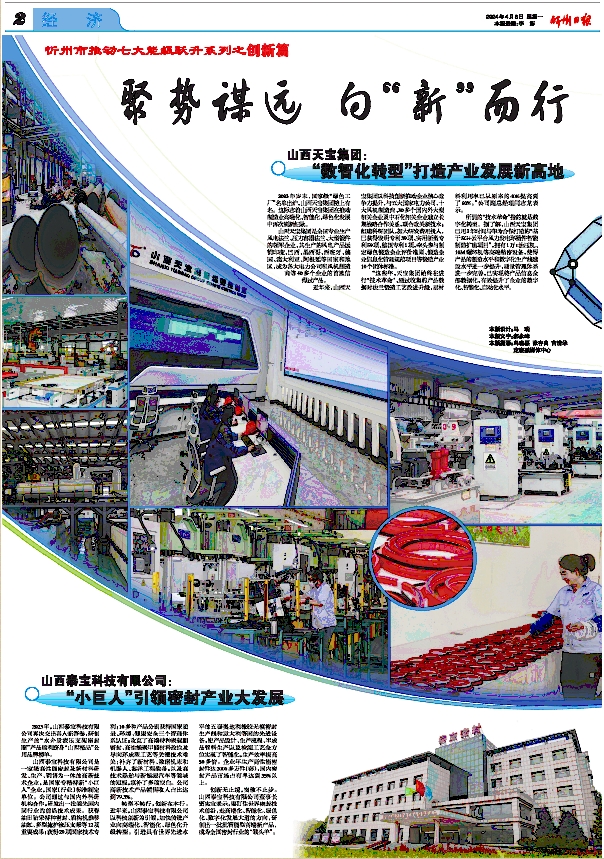 轉(zhuǎn)型不轉(zhuǎn)行,創(chuàng)新在本行。作為已在原平深耕36年的企業(yè),山西泰寶科技有限公司從未在發(fā)展的賽道上放慢創(chuàng)新的腳步。公司董事長賈憲寶“盯住世界密封技術(shù)前沿,走高端化、智能化、綠色化、數(shù)字化發(fā)展大道的發(fā)展方向,研創(chuàng)出一批批智能型高端新產(chǎn)品,成為全國密封行業(yè)的‘領(lǐng)頭羊’”的雄心壯志更不是紙上談兵。此前,山西泰寶科技有限公司研發(fā)生產(chǎn)的高性能液壓支架密封件、電液控高壓密封圈,就解決了我國高端裝備行業(yè)密封件長期依賴進(jìn)口的局面,被稱為“密封科技行業(yè)的排頭兵”。