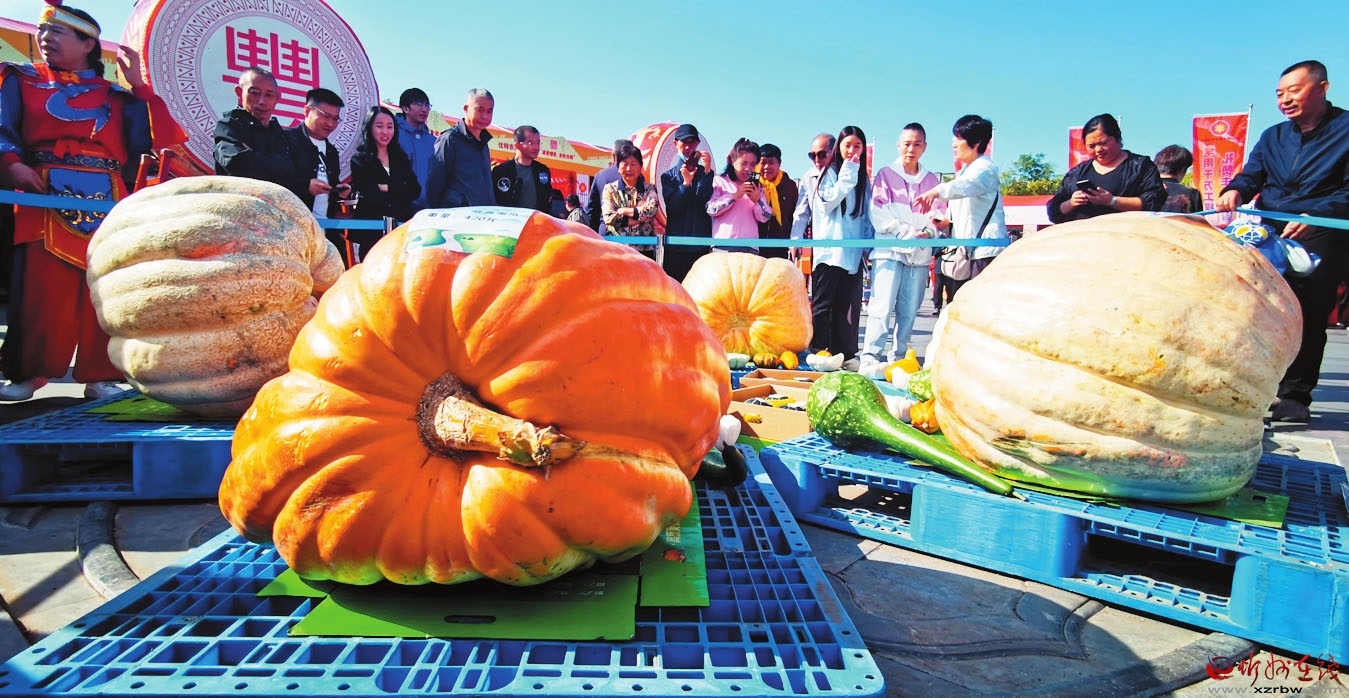 圖為活動現(xiàn)場展示的260公斤的大南瓜。