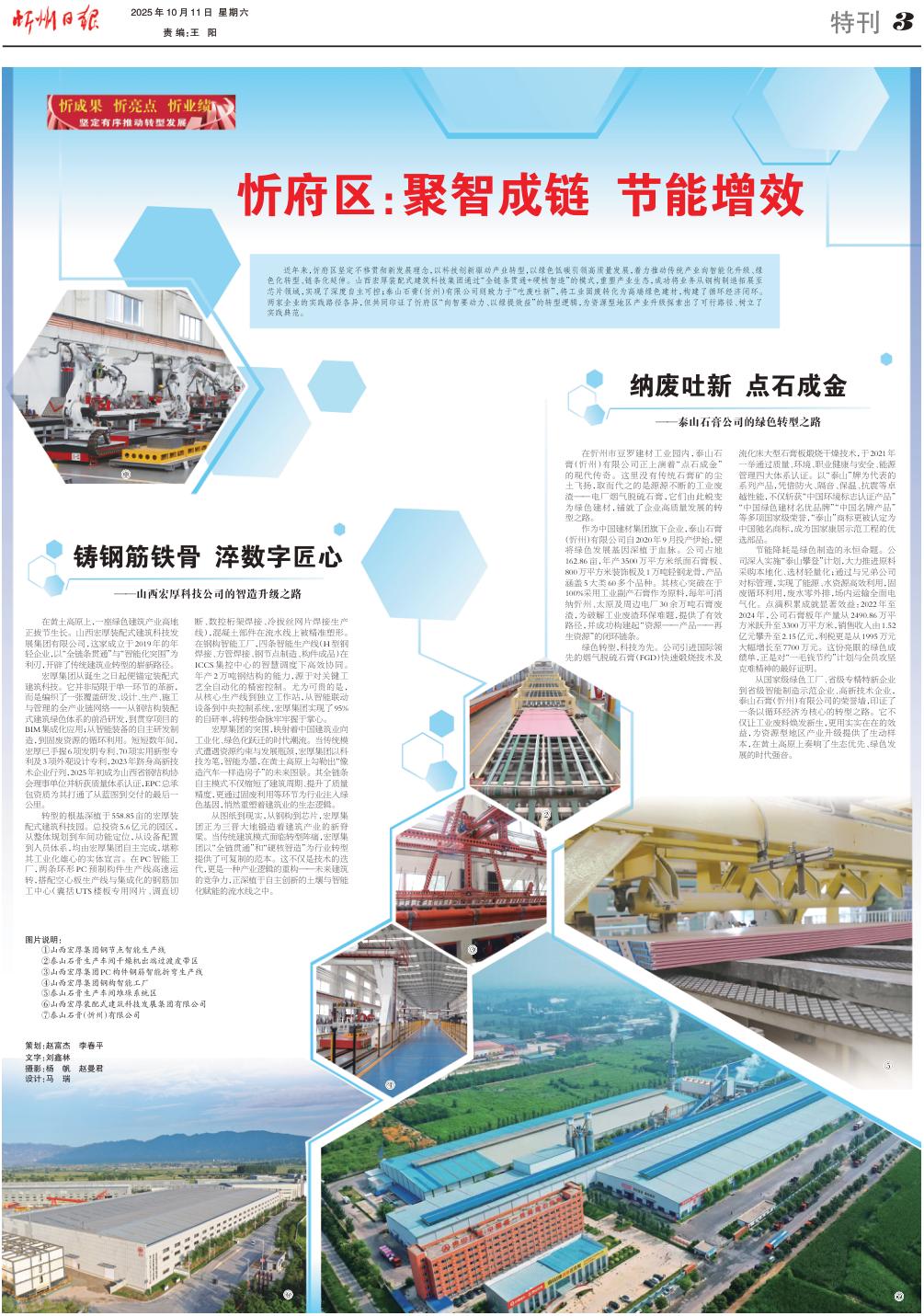 近年來(lái),忻府區(qū)堅(jiān)定不移貫徹新發(fā)展理念,以科技創(chuàng)新驅(qū)動(dòng)產(chǎn)業(yè)轉(zhuǎn)型,以綠色低碳引領(lǐng)高質(zhì)量發(fā)展,著力推動(dòng)傳統(tǒng)產(chǎn)業(yè)向智能化升級(jí)、綠色化轉(zhuǎn)型、鏈條化延伸。山西宏厚裝配式建筑科技集團(tuán)通過(guò)“全鏈條貫通+硬核智造”的模式,重塑產(chǎn)業(yè)生態(tài),成功將業(yè)務(wù)從鋼構(gòu)制造拓展至芯片領(lǐng)域,實(shí)現(xiàn)了深度自主可控;泰山石膏(忻州)有限公司則致力于“吃廢吐新”,將工業(yè)固廢轉(zhuǎn)化為高端綠色建材,構(gòu)建了循環(huán)經(jīng)濟(jì)閉環(huán)。兩家企業(yè)的實(shí)踐路徑各異,但共同印證了忻府區(qū)“向智要?jiǎng)恿Α⒁跃G提效益”的轉(zhuǎn)型邏輯,為資源型地區(qū)產(chǎn)業(yè)升級(jí)探索出了可行路徑、樹立了實(shí)踐典范。