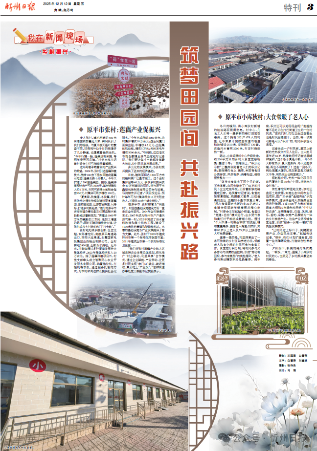 張村地處城鄉(xiāng)接合部,區(qū)位優(yōu)越,東鄰滹沱河,南接原平高速路出口,西鄰大運(yùn)高速,北靠國(guó)家電投集團(tuán)山西鋁業(yè)有限公司。全村耕地2400畝,全部為水澆地。近年來(lái),村集體通過(guò)多種渠道發(fā)展壯大集體經(jīng)濟(jì),2023年集體經(jīng)濟(jì)收入20萬(wàn)余元。除了蓮藕種植項(xiàng)目外,村黨支部牽頭成立智聚民心農(nóng)業(yè)開(kāi)發(fā)服務(wù)有限公司,購(gòu)置拖拉機(jī)、打捆機(jī)等農(nóng)機(jī),通過(guò)服務(wù)托管的方式,為本村和周邊群眾提供社會(huì)化服務(wù)?!敖衲晖瓿汕锔?000余畝,為村集體增收10萬(wàn)余元;盤活閑置門面房出租,年增收4.5萬(wàn)元;出租集體機(jī)動(dòng)地,增收5萬(wàn)元;光伏發(fā)電年增收5000余元?!惫瓭?rùn)鎖,這位老支書飽含感情且語(yǔ)氣堅(jiān)定地對(duì)記者說(shuō),“我們要讓每寸土地都發(fā)揮最大效益,讓村民共享發(fā)展成果?!?/p>