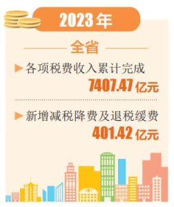本報(bào)訊(記者任志霞)近日,記者從全省稅務(wù)工作會上獲悉,2023年全省各項(xiàng)稅費(fèi)收入累計(jì)完成7407.47億元,全省新增減稅降費(fèi)及退稅緩費(fèi)401.42億元。
