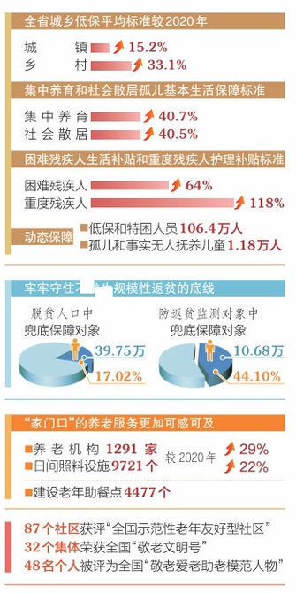 “十四五”以來,我省重點加強分層分類的社會救助體系建設,持續(xù)織密扎牢民生兜底保障安全網。建立各類救助標準動態(tài)調整機制,全省城鄉(xiāng)低保平均標準較2020年分別增長15.2%和33.1%。社會救助對象從低保、特困人員向低保邊緣家庭、剛性支出困難家庭延伸,救助方式從單一的物質救助向“物質+服務”轉變,救助更便捷、響應更及時、服務更暖心。