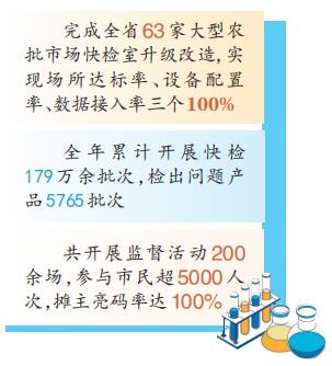 完成全省63家大型農(nóng)批市場(chǎng)快檢室升級(jí)改造,實(shí)現(xiàn)場(chǎng)所達(dá)標(biāo)率、設(shè)備配置率、數(shù)據(jù)接入率三個(gè)100%;通過高頻次檢測(cè),實(shí)現(xiàn)農(nóng)批市場(chǎng)經(jīng)營主體100%覆蓋;食用農(nóng)產(chǎn)品追溯,入場(chǎng)經(jīng)營戶“一戶一碼”賦碼率100%……