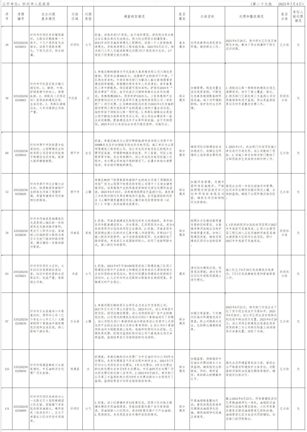 中央生態(tài)環(huán)境保護督察組群眾信訪舉報轉(zhuǎn)辦和邊督邊改公開情況一覽表(第二十九批)