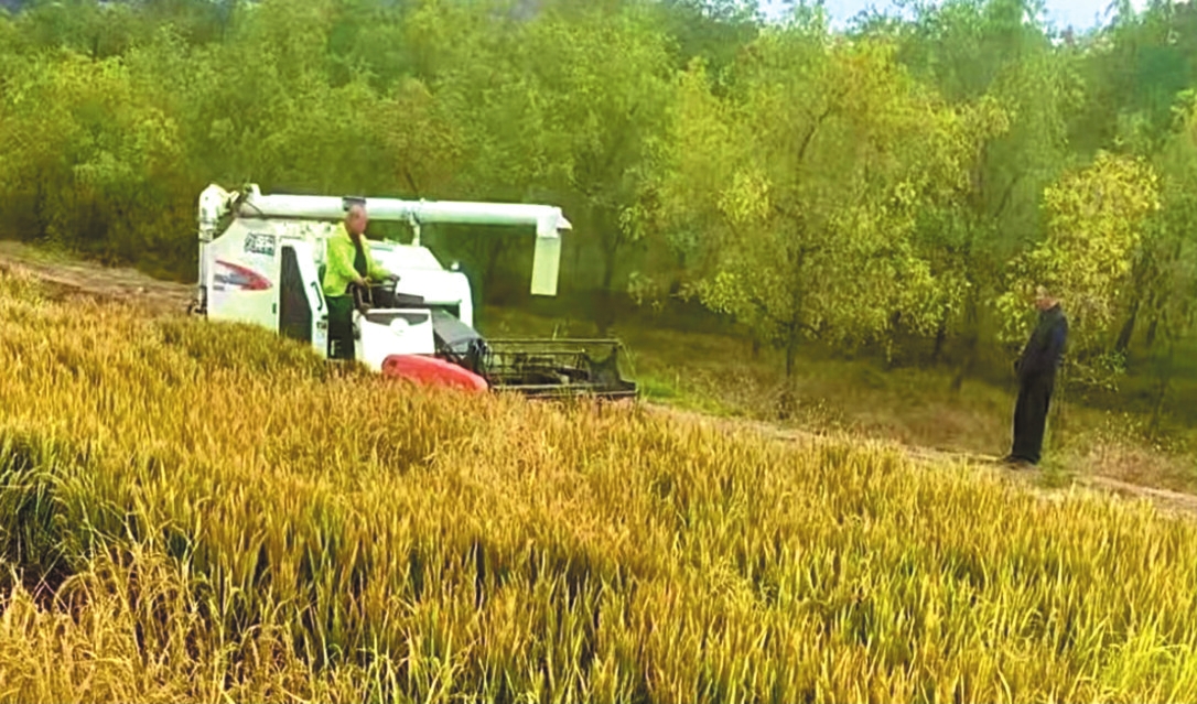金秋時(shí)節(jié),保德縣馮家川鄉(xiāng)的20余畝鹽堿地試種稻田里,金黃稻穗壓彎了稻稈,微風(fēng)拂過,掀起層層“金浪”。隨著聯(lián)合收割機(jī)的轟鳴聲響起,成片水稻被快速切割、脫粒、清選,飽滿的谷粒源源不斷地被送入儲(chǔ)糧箱,標(biāo)志著當(dāng)?shù)厥状嘻}堿地水稻試種迎來豐收。經(jīng)測(cè)算,畝產(chǎn)達(dá)830斤左右,順利達(dá)成預(yù)期產(chǎn)量目標(biāo)。