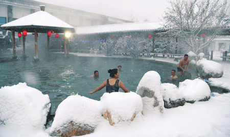 初冬,清晨的薄霧尚未散盡,“溫泉之鄉(xiāng)”奇村鎮(zhèn)南高村的溫泉民宿小院里,來自內(nèi)蒙古包頭的游客杜鵬程正悠閑地泡著溫泉?!懊磕赀@時(shí)候都來住上一個(gè)月,老寒腿舒服多了?!彼麗芤獾卣f。