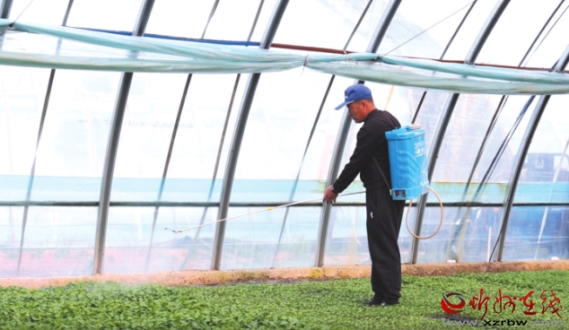 圖為辣椒育苗大棚內(nèi),農(nóng)戶正精心管護(hù)辣椒幼苗。