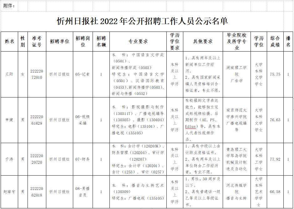附件: 忻州日報社2022年公開招聘工作人員公示名單