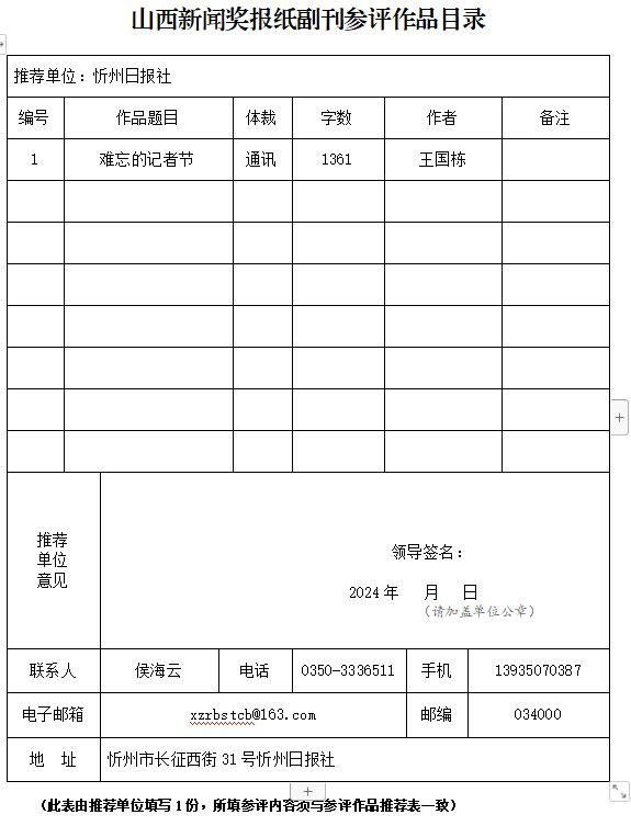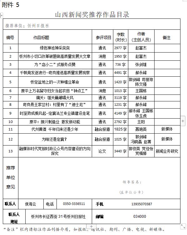經(jīng)忻州日?qǐng)?bào)社編委會(huì)研究決定,以下作品擬推薦申評(píng)第33屆山西新聞獎(jiǎng),現(xiàn)予以公示。有反對(duì)意見(jiàn)者,請(qǐng)將反對(duì)意見(jiàn)書(shū)面報(bào)至統(tǒng)計(jì)考核部。