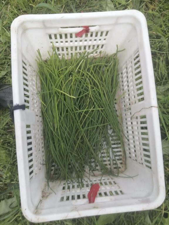 在右玉縣威遠(yuǎn)鎮(zhèn)小香蔥種植基地,連片種植的小香蔥長勢喜人。三五成群的農(nóng)民穿著雨鞋,蹲在地里用小鐮刀割蔥,割下一把后把雜草撿出來,把黃尖掐掉,干凈整齊地擺進(jìn)筐子里。