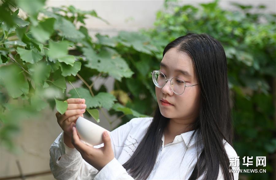 8月24日,屠金歌在戶外尋找適合制作木葉盞的樹(shù)葉。新華社發(fā)(趙子碩攝)
