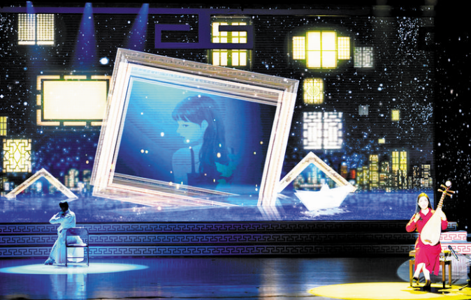 9月29日,第十屆中國曲藝節(jié)在河南省平頂山市文化藝術(shù)中心開幕,來自全國各地的曲藝演員為觀眾獻上一場精彩紛呈的曲藝盛宴。本屆曲藝節(jié)采取現(xiàn)場演出和線上展演相結(jié)合的方式舉辦。圖為在河南省平頂山市文化藝術(shù)中心,曲藝演員在舞臺上表演節(jié)目。( 新華社記者 郝 源 攝)