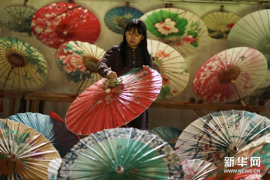 2019年6月,“赤水油紙傘制作技藝”被列入貴州省級(jí)非物質(zhì)文化遺產(chǎn)名錄。當(dāng)?shù)匾劳写笸沛?zhèn)的旅游產(chǎn)業(yè),采取政策引導(dǎo)、資金扶持等方式,鼓勵(lì)民間藝人重拾油紙傘制作技藝。油紙傘產(chǎn)品投放旅游市場(chǎng),深受消費(fèi)者青睞。油紙傘制作不僅帶動(dòng)眾多群眾就業(yè)增收,也讓油紙傘技藝重新煥發(fā)生機(jī)。新華社發(fā)(王長(zhǎng)育 攝)