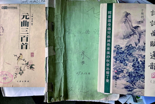 從《唐詩(shī)三百首》《詩(shī)詞曲賦通識(shí)》,到《元曲曲譜》《元曲三百首》,宋高柱臥室的書架里,塞滿了各種學(xué)習(xí)資料?!奥貙懽饕灿辛烁杏X,還登上當(dāng)?shù)氐膱?bào)紙,后來《中華詩(shī)詞》《當(dāng)代散曲》等刊物就把我的稿子選上了,越寫越有興趣。”他說。
