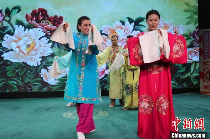 中亞媒體高層觀看了京劇表演,并與京劇演員互動。陶拴科 攝