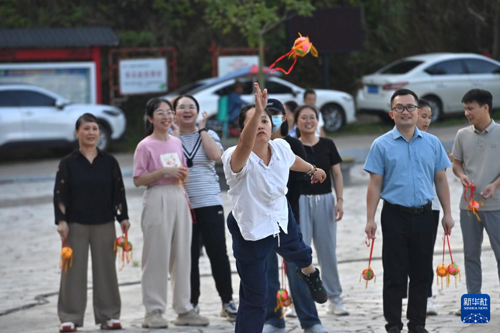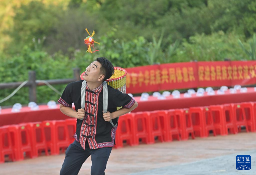 9月5日,廣西梧州市委統(tǒng)戰(zhàn)部、市民宗委、市工商聯等部門開展民族團結進步創(chuàng)建主題活動,當地各族干部群眾通過拋繡球、板鞋競速、篝火晚會等內容豐富、形式新穎的民俗系列文體活動,促進各民族交往交流交融。新華社記者 黃孝邦 攝
