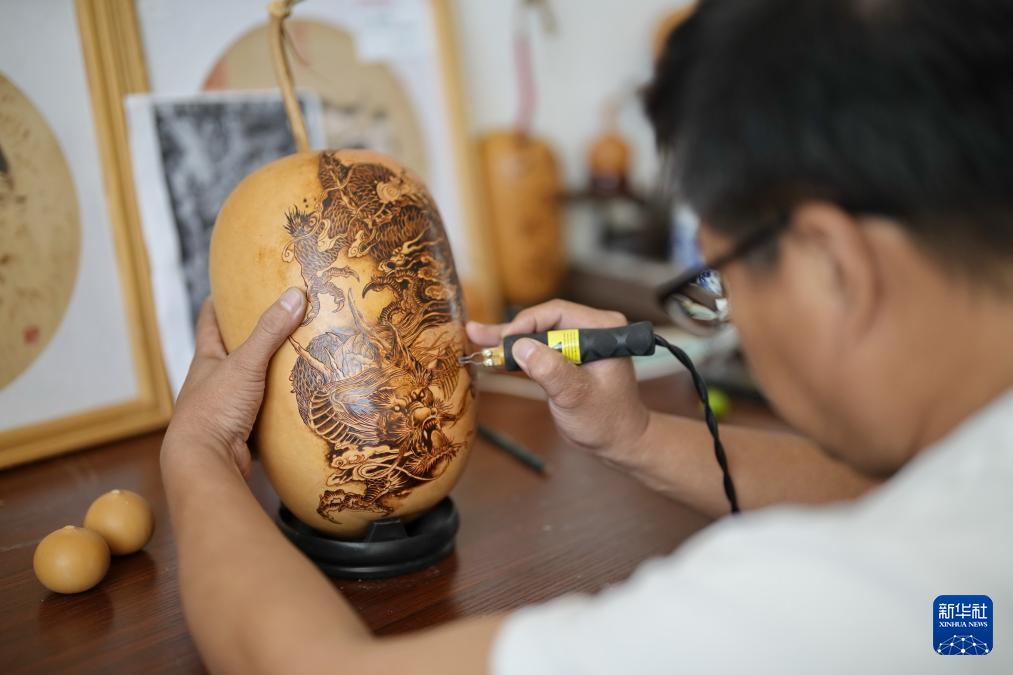 9月16日,烙畫(huà)藝人在玉田縣“非遺會(huì)客廳”工作室內(nèi)制作烙畫(huà)。
