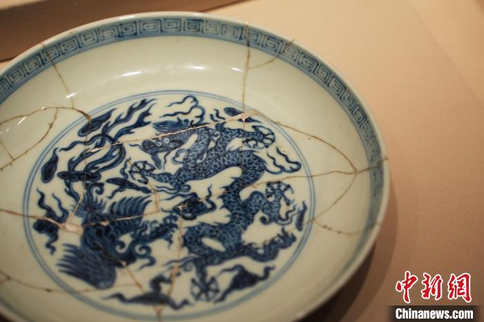 在展覽中,除精致的成品瓷外,一些因瑕疵無法面世的碎瓷片也講述著御瓷故事?!斑@件器物的器型和發(fā)色都非常好,但因?yàn)榘盐遄埉嫵闪肆Ρ悴荒艹手劣?,諸如此類任何細(xì)微的差錯(cuò)都是不被接受的?!睋?jù)李雪蕾介紹,明清御窯對(duì)于龍紋有嚴(yán)格的規(guī)定,尤其是明代早中期,龍紋只許皇家使用,而五爪龍只供皇帝使用,出于御窯嚴(yán)苛的挑選制度和規(guī)范流程,明代早中期的淘汰品為避免流入民間都被打碎就地掩埋。