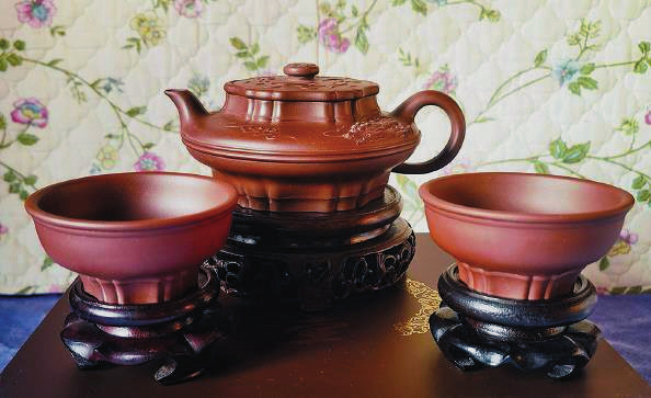 宋代詩人梅堯臣有詩云:“小石冷泉留早味,紫泥新品泛春華。”此壺正是用四海窯多年收藏的紫砂老泥為原料。值得一提的是,紫泥富含礦物質(zhì)和獨(dú)特的透氣性,讓茶水更加清醇可口。甲辰文龍壺還配了兩只龍杯,上寬下斂,簡約靈動,圈足也以筋紋裝飾,使“寸柄之壺”與“盈握之杯”和諧完美而珠聯(lián)璧合。(王琪森)