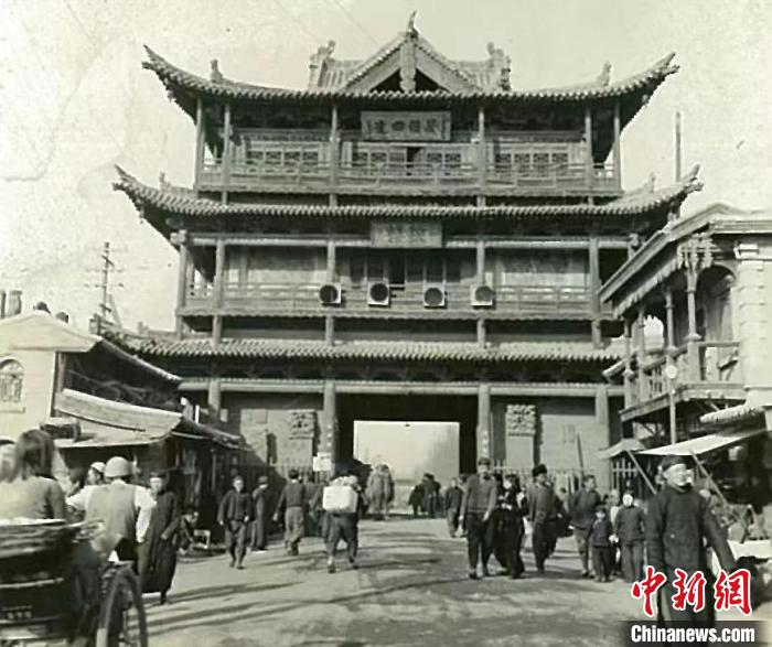 一百多年前,大同古城內(nèi)的鼓樓。大同市古城保護和修復(fù)研究會 提供