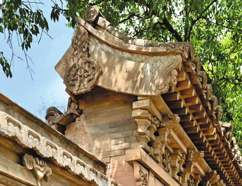 ▲ 代縣東若院村硬山頂磚雕懸魚,蝙蝠、烏龜、纓槍、華蓋、纏枝花草圖案,寓意富貴、長壽、簪纓不絕。