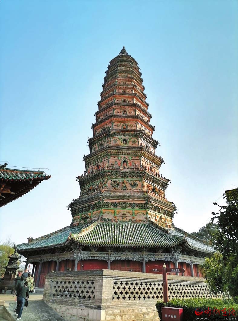在洪洞縣,有一座舉世聞名的佛教古剎廣勝寺,“三絕一奇”令人驚嘆。一絕是飛虹琉璃塔,是廣勝寺標(biāo)志性建筑,被推為全國第一塔,塔身外部有七色琉璃構(gòu)件與裝飾圖形,每一層都有一組中心圖案,生動(dòng)逼真,色彩艷麗,被認(rèn)證為“世界最高的多彩琉璃塔”。二絕是《趙城金藏》,是玄奘從天竺取回的梵文經(jīng)卷中譯善本,世界上僅此一部,被譽(yù)為稀世珍寶。三絕是元代壁畫。內(nèi)容以祈雨、行雨、酬神等生活場景為主,布局嚴(yán)謹(jǐn),造型生動(dòng),堪稱我國風(fēng)俗神話題材的壁畫杰作。一奇是左右扭古柏,有1300余年歷史,一東一西,像兩位護(hù)法將軍守衛(wèi)著大殿。兩株古柏,左邊的朝左扭,右邊的向右扭,甚為奇特。