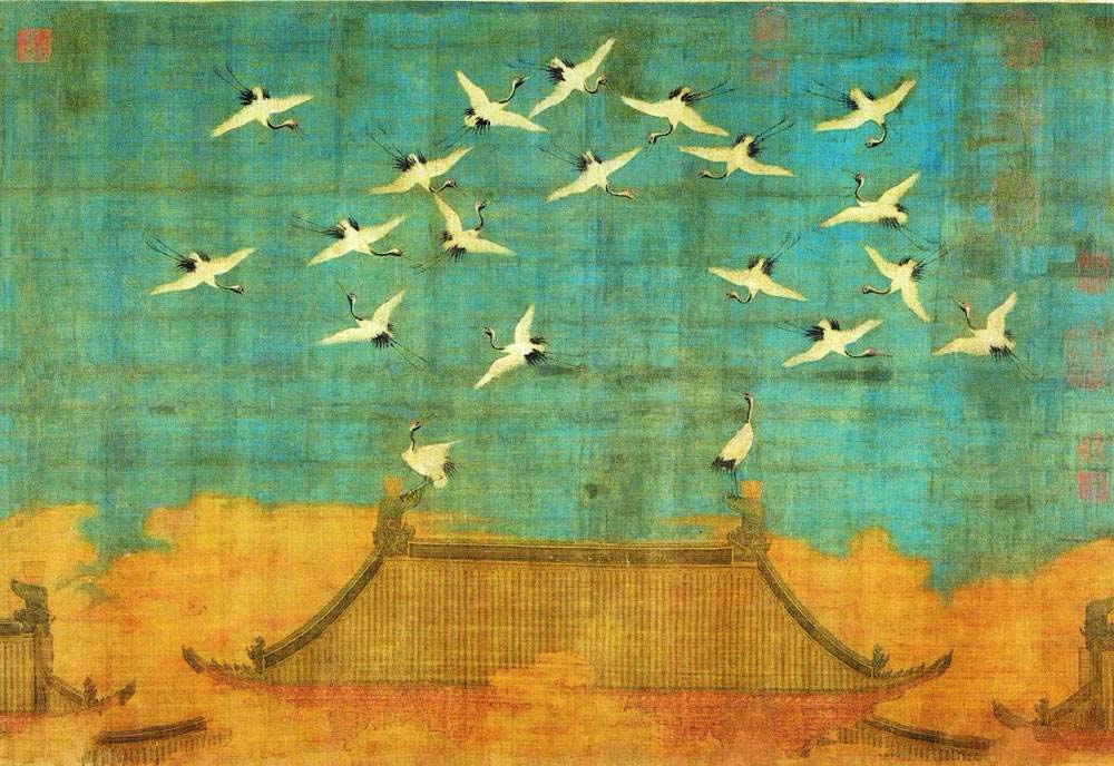 北宋政和二年(1112年)上元節(jié)次夕,天清氣朗,群鶴飛鳴,盤旋于宮殿上空,久久不肯離去。這讓宋徽宗趙佶產(chǎn)生了“仙鶴告瑞”的聯(lián)想,故欣然命筆,將目睹的這一幕繪于絹素之上,一幅千古名作《瑞鶴圖》就此誕生。在題畫詩中,趙佶以瘦金體記述了事件原委。他在詩中將群鶴與古籍中提及的祥鸞、赤雁相提并論,還特意強調(diào)了鶴與長生不老的關(guān)聯(lián),將它們與蓬萊仙山聯(lián)系在一起,指出其壽命能夠長達千年。雖然趙佶的祥瑞之愿難免落空,但鶴確實是一種長壽的動物。人工飼養(yǎng)的丹頂鶴能活到七十多歲,這相對于古人的平均壽命,實在是很可觀了。