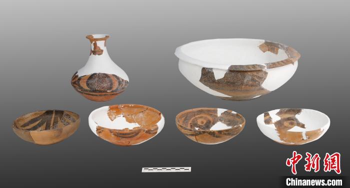 遺址出土的彩陶器。四川省文物局供圖 孔龍村遺址碳十四測(cè)年數(shù)據(jù)表明,孔龍村遺址年代距今約5500年至4800年,是迄今川西地區(qū)具有明確測(cè)年的年代最早的新石器時(shí)代遺存,為研究川西地區(qū)新石器時(shí)代晚期的社會(huì)形態(tài)、手工業(yè)生產(chǎn)等問(wèn)題提供了重要資料。遺址出土的大量類型豐富的陶器,特別是首次在川西地區(qū)發(fā)現(xiàn)了特征鮮明的石嶺下類型風(fēng)格彩陶以及大量馬家窯文化及本土類型的彩陶,為研究川西地區(qū)新石器時(shí)代考古學(xué)文化譜系、川西彩陶的來(lái)源和價(jià)值,西北地區(qū)仰韶文化晚期和馬家窯文化彩陶的傳播等問(wèn)題提供了大量重要的新資料。