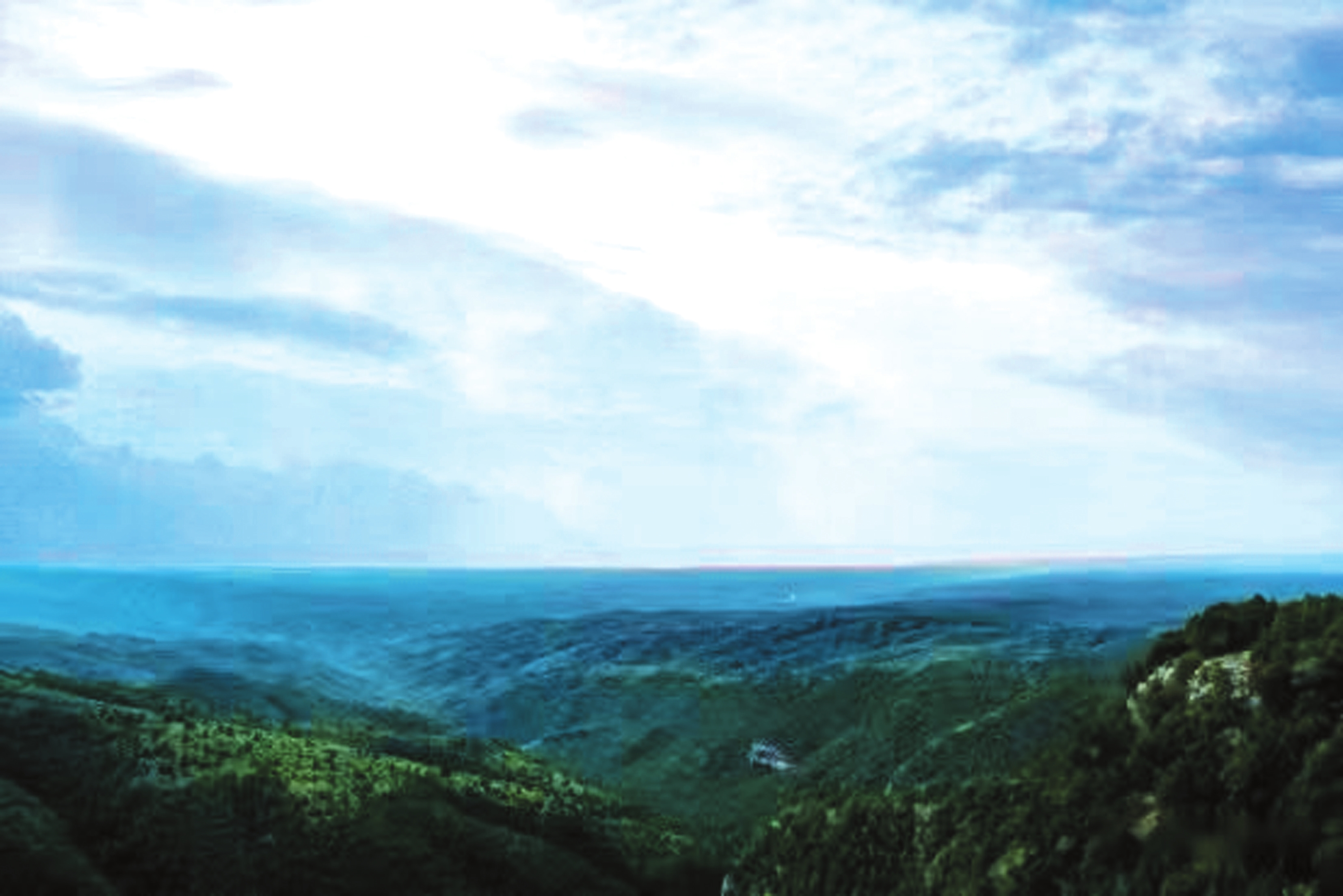 立于井油山巔,風(fēng)光盡收眼底。遠(yuǎn)山如黛,似畫(huà)師以淡墨隨性揮灑;云霧纏繞,像仙人隨手拋下的素紗。風(fēng)自山腳徐徐而來(lái),攜著青草的鮮嫩與松針的醇厚,穿入肺腑。每一次呼吸都如飲甘露,令人心神一振,旅途的疲憊瞬間消散。八月的山澗,細(xì)流潺潺,其聲悅耳。日光透過(guò)枝葉縫隙,碎成點(diǎn)點(diǎn)金箔,在山坳間跳躍,為滿山濃綠注入了靈動(dòng)氣息。密林深處,時(shí)而傳來(lái)野雞、鷓鴣的清啼,劃破山間靜謐;時(shí)而有野兔、松鼠竄動(dòng)的窸窣聲,讓整座山都透著勃勃生機(jī)。