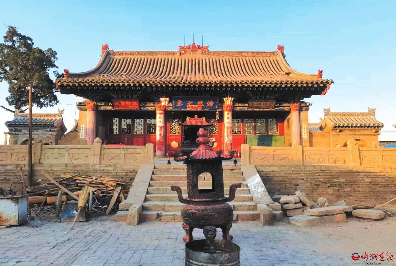 東關(guān)關(guān)帝廟位于原平市崞陽(yáng)鎮(zhèn)東關(guān)村,距崞陽(yáng)城東門外約100米。始建年代不詳,據(jù)正殿梁架題記載,清咸豐三年(1953)重修,現(xiàn)存建筑為清代遺構(gòu)。東西長(zhǎng)25.5米,南北寬87米,占地面積2218平方米。坐北朝南,二進(jìn)院落布局,中軸線建有影壁、大門、正殿和圣母殿,兩側(cè)為東西配殿。正殿磚砌臺(tái)基,前設(shè)月臺(tái),其上三面設(shè)勾欄、望柱,欄上雕有各種花卉、如意及禽獸。殿身面寬三間,進(jìn)深六椽,單檐懸山頂。七檁前后廊式構(gòu)架,斗拱五踩重翹,平身科每間一攢,出45度斜拱,前檐各間均設(shè)四扇六抹萬(wàn)字紋格扇門,殿內(nèi)新塑像3尊。圣母殿磚砌臺(tái)基,殿身面寬三間,進(jìn)深三椽,單檐硬山頂,四檁前廊式構(gòu)架。明間四扇六抹萬(wàn)字紋格扇門,次間為格扇窗。殿內(nèi)新塑像3尊。廟內(nèi)存清代重修關(guān)帝廟碑3通,殘碑1通,石獅2對(duì)。1981年列為原平市(縣級(jí))文物保護(hù)單位。2022年列為第三批市級(jí)文物保護(hù)單位。