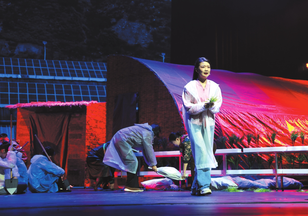 整體來說,話劇《三棵樹下》讓人感受到了編劇、導演以及演出全體的努力。無論是李小雨,還是曹民財,以及村民們,都被時代的洪流裹挾著,個體命運的軌跡不可避免地在歷史的變革洪流中發(fā)生改變。劇目結尾,以“鄉(xiāng)村文化旅游季”為契機,宋家溝村民們在李小雨、第一書記王家寶以及村委一干人帶領下,大力發(fā)展大棚經(jīng)濟,農(nóng)文旅齊發(fā)展,走上了增收致富的康莊大道,村民們由“要我干”到“我要干”,觀念一旦轉(zhuǎn)變,一切就大變模樣。你只要擺正位置,發(fā)揮自己的優(yōu)勢,就能在鄉(xiāng)村變革中展現(xiàn)嶄新的作為。這便是《三棵樹下》提供給我們的重要啟示。站在這個角度上說,話劇《三棵樹下》的成功也就是順理成章的事情了。其兼具思想深度、藝術張力和情感溫度,給予觀眾十分好的藝術享受。(趙志峰)