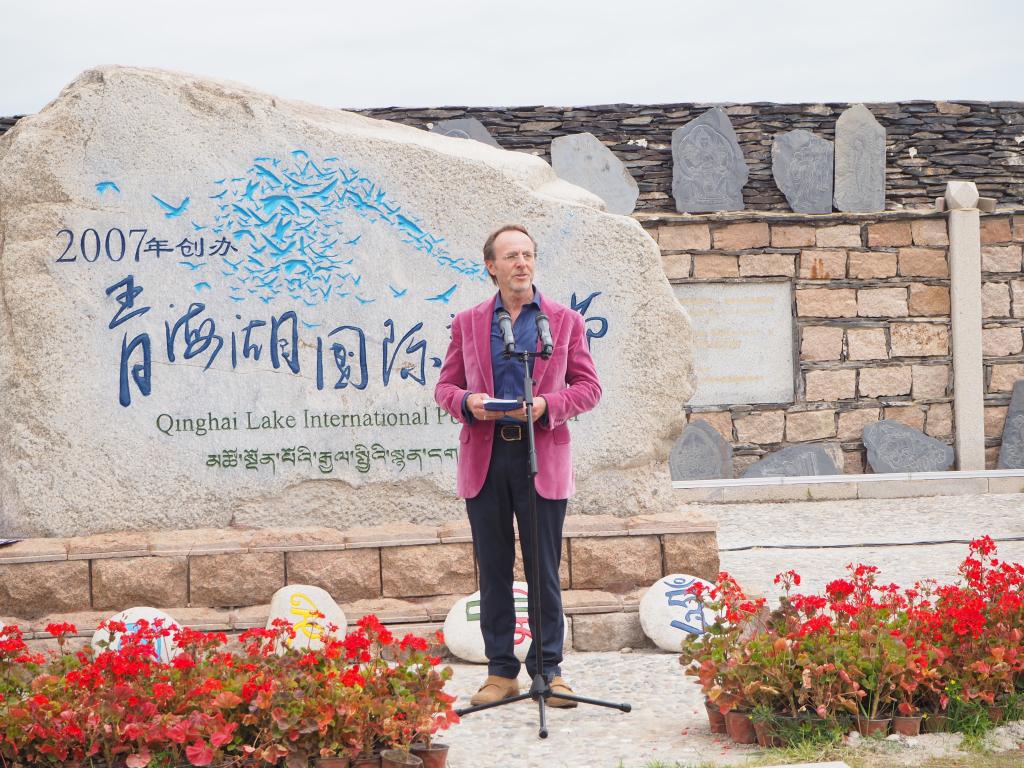 6月29日,澳大利亞詩人馬克·特雷尼克在頒獎現(xiàn)場致辭感謝。新華社記者 白瑪央措 攝